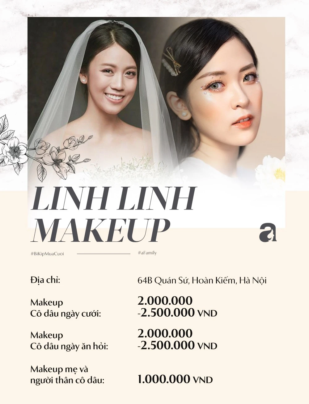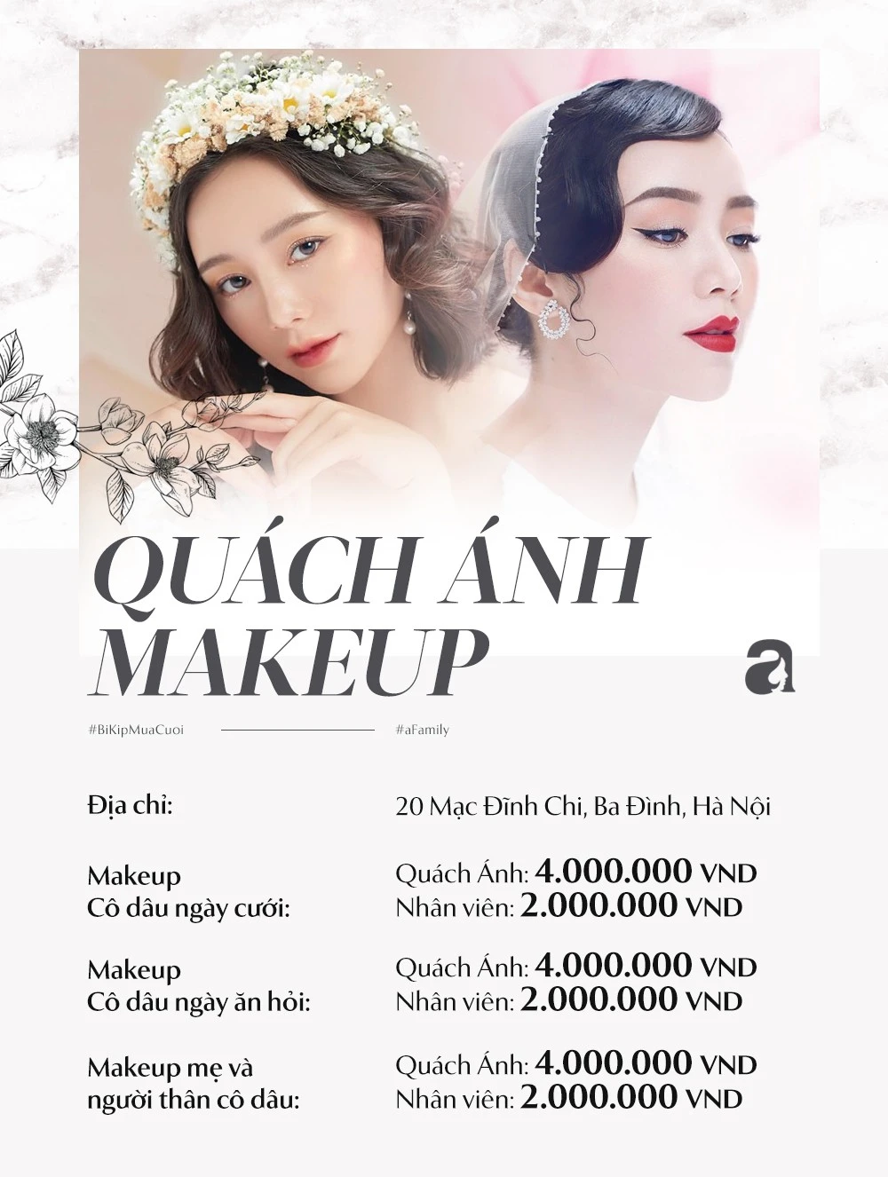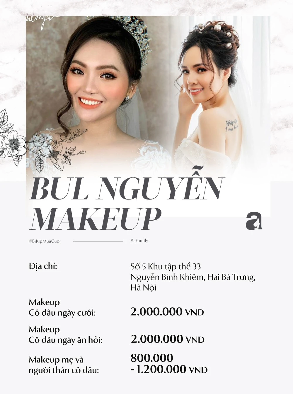 Here are 10 reputable wedding makeup addresses in Hanoi for the bride to refer.Note these makeup prices do not include the cost of moving to the bride's house.