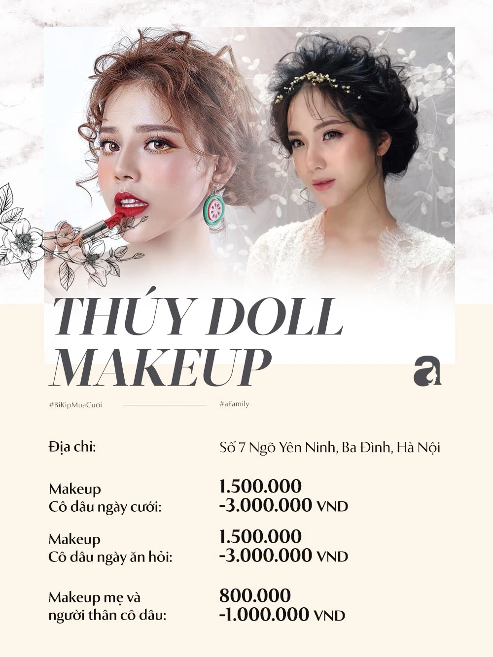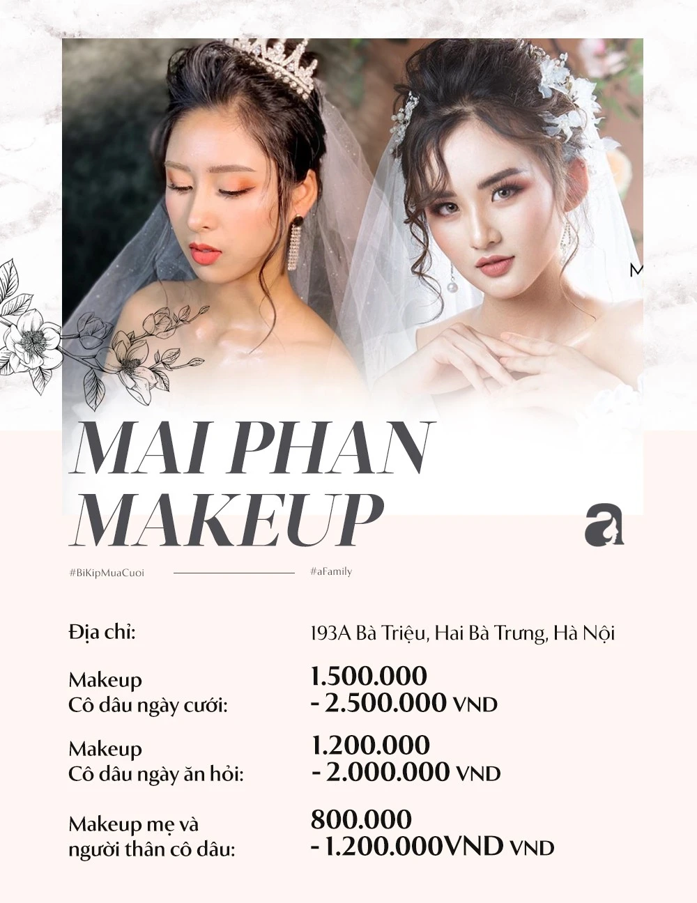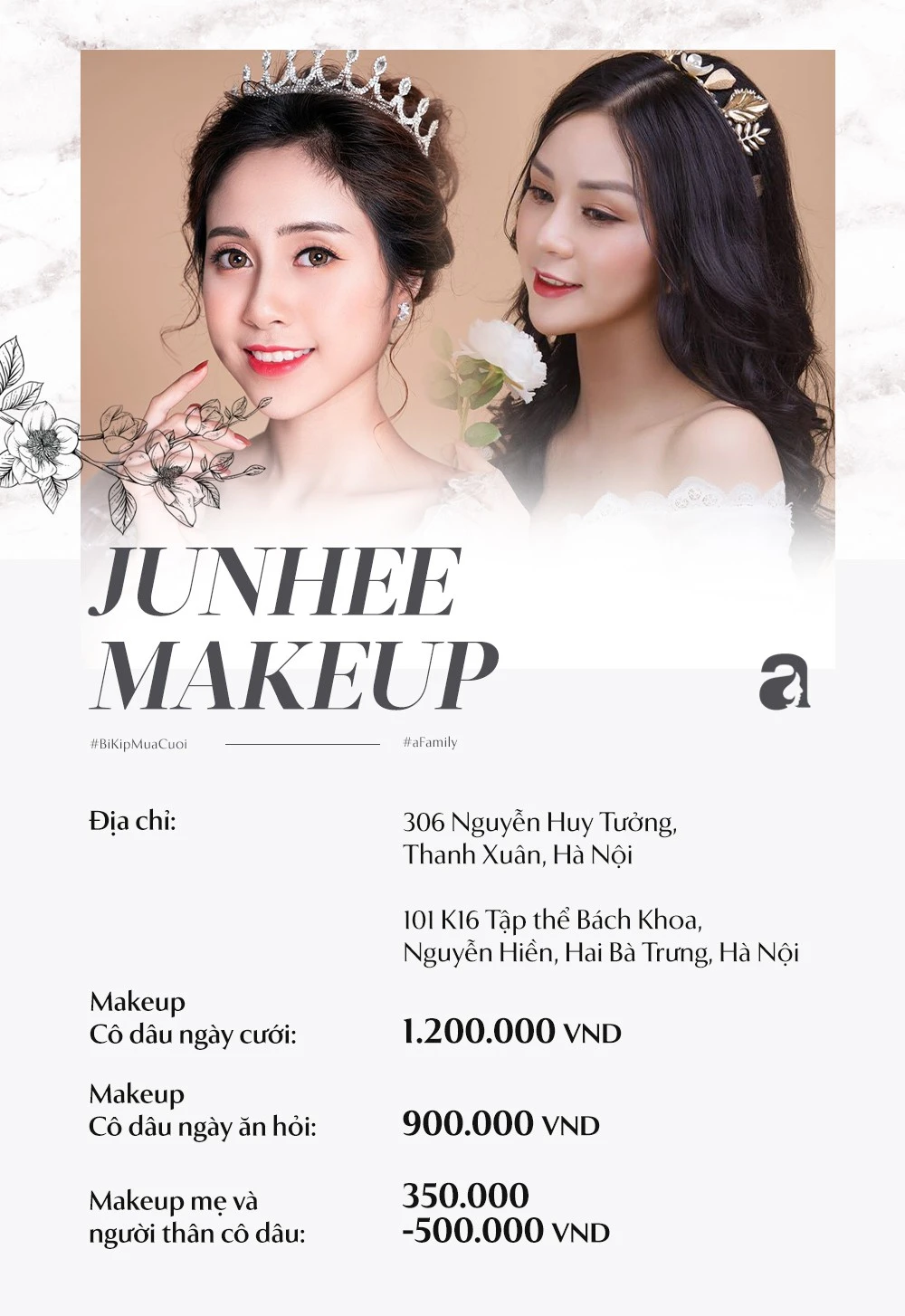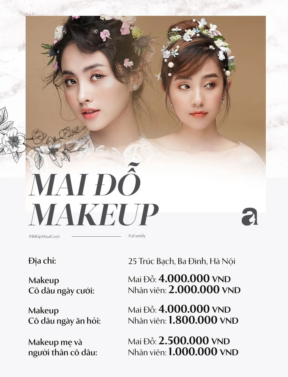 Here are 10 reputable wedding makeup addresses in Hanoi for the bride to refer.Note these makeup prices do not include the cost of moving to the bride's house.