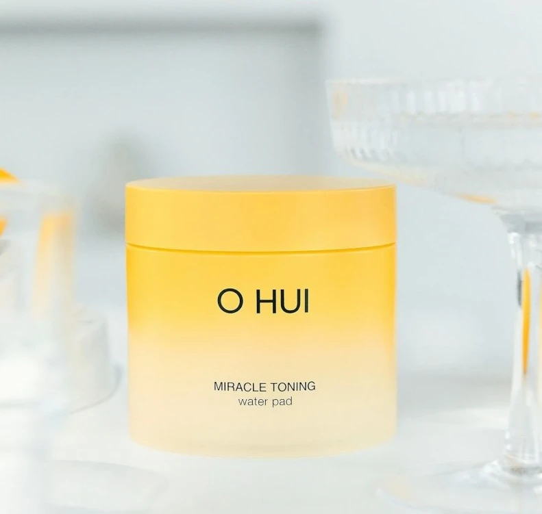 OHUI MIRACLE TONING WATER PAD MUSIC Cotton contains vitamin C, Hyalunoric Acid to help skin moisturize, improve dark spots and make skin firm, juicy like jelly jelly jelly