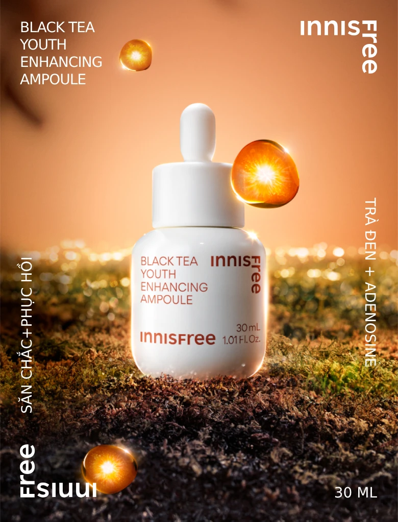 Innisfree Black Tea Youth Ampoule Black Tea Youth Ampoule contains fermented black tea extract in combination with niacinamide, protecting the skin from free radicals as well as harmful agents in the habitat like raysUV and pollution, bringing energy, firmness to the skin.This is also one of the most favorite serum bottles of Innisfree.