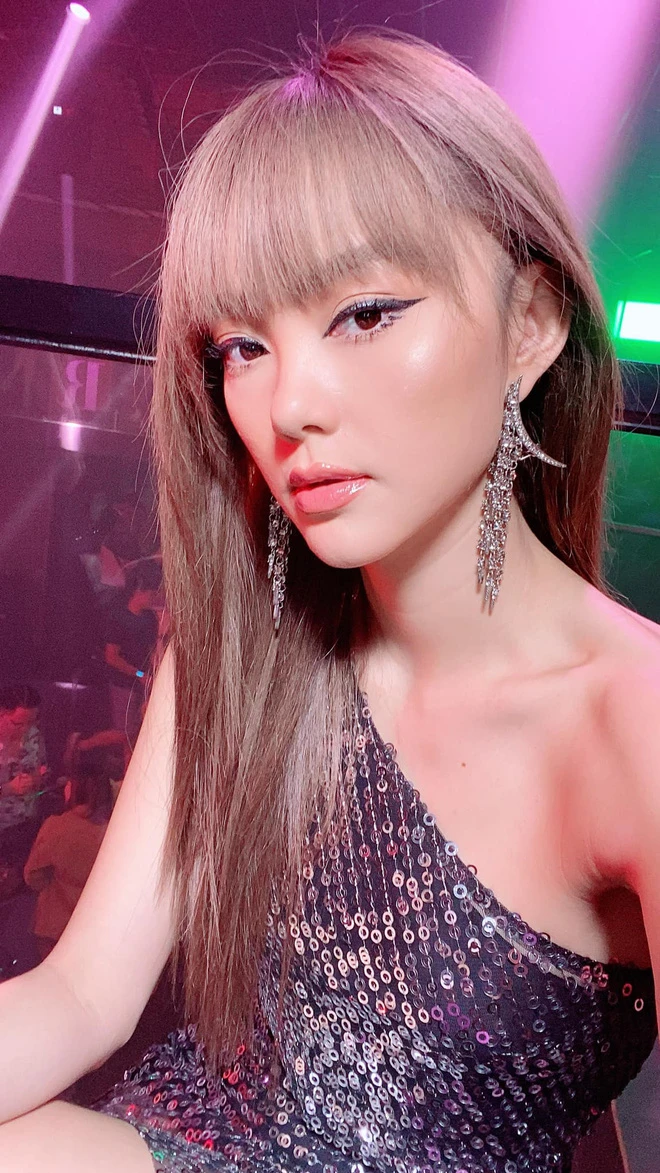 Not only once but many times Minh Hang attracted attention by his colorful eyeliner lines, such as this purple eyeliner.Purple is inherently difficult, careless to be criticized immediately.But Minh Loc cleverly beat his cheeks and pink lips, enough to make Minh Hang look alive but still not "Tham".Or other times, he turned Minh Hang into a charming and magical girl thanks to innovation of two details, which is to groom the lower eyelashes and hit the cheeks along the two sides.