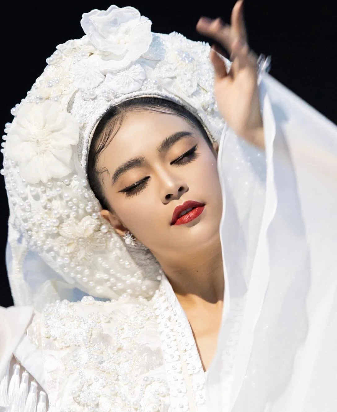 Nha Phuong, her pure and pure shaping, received a lot of compliments from the audience.A little eye and highlighter on the cheeks helps Nha Phuong's skin is plump, full of vitality