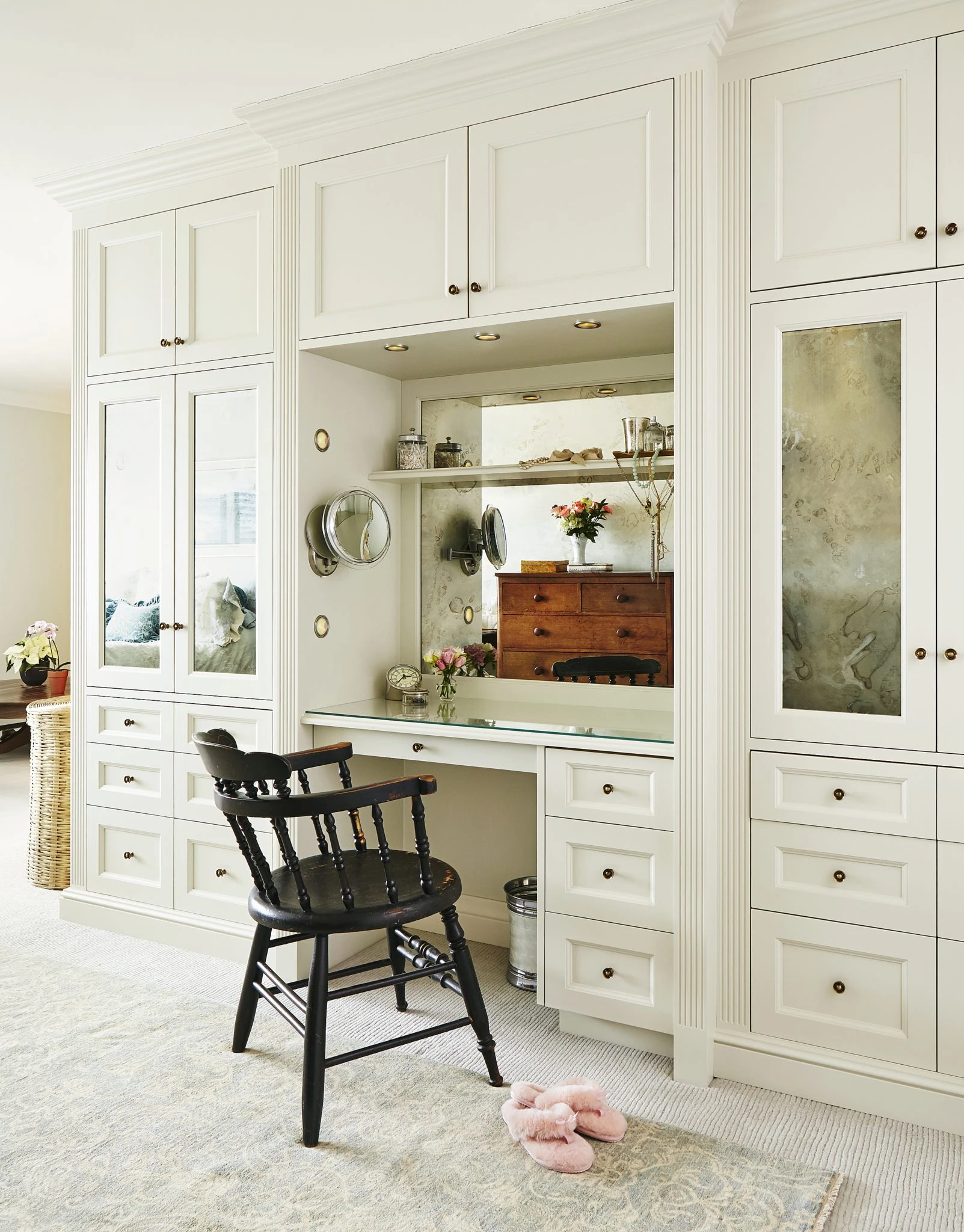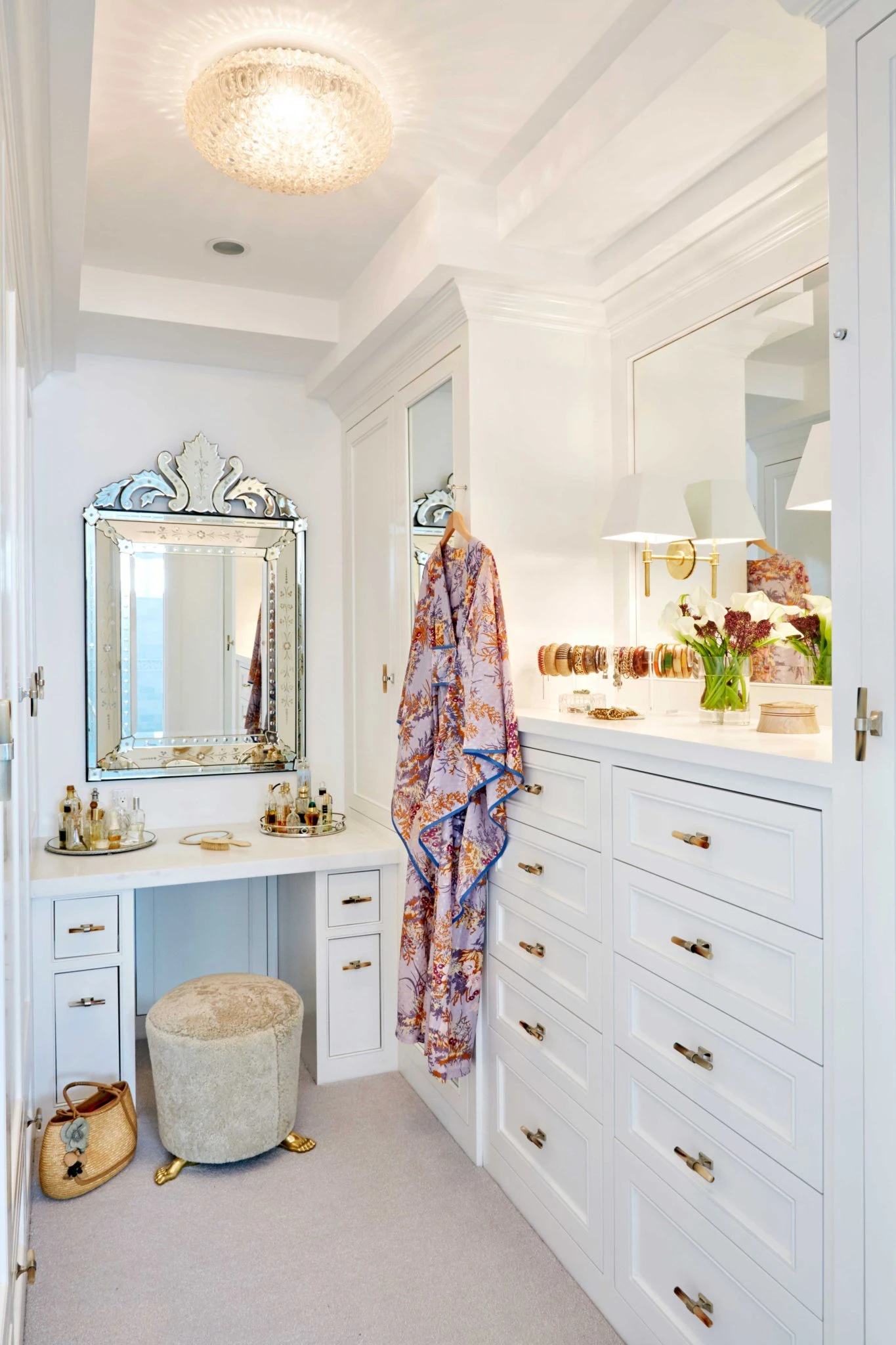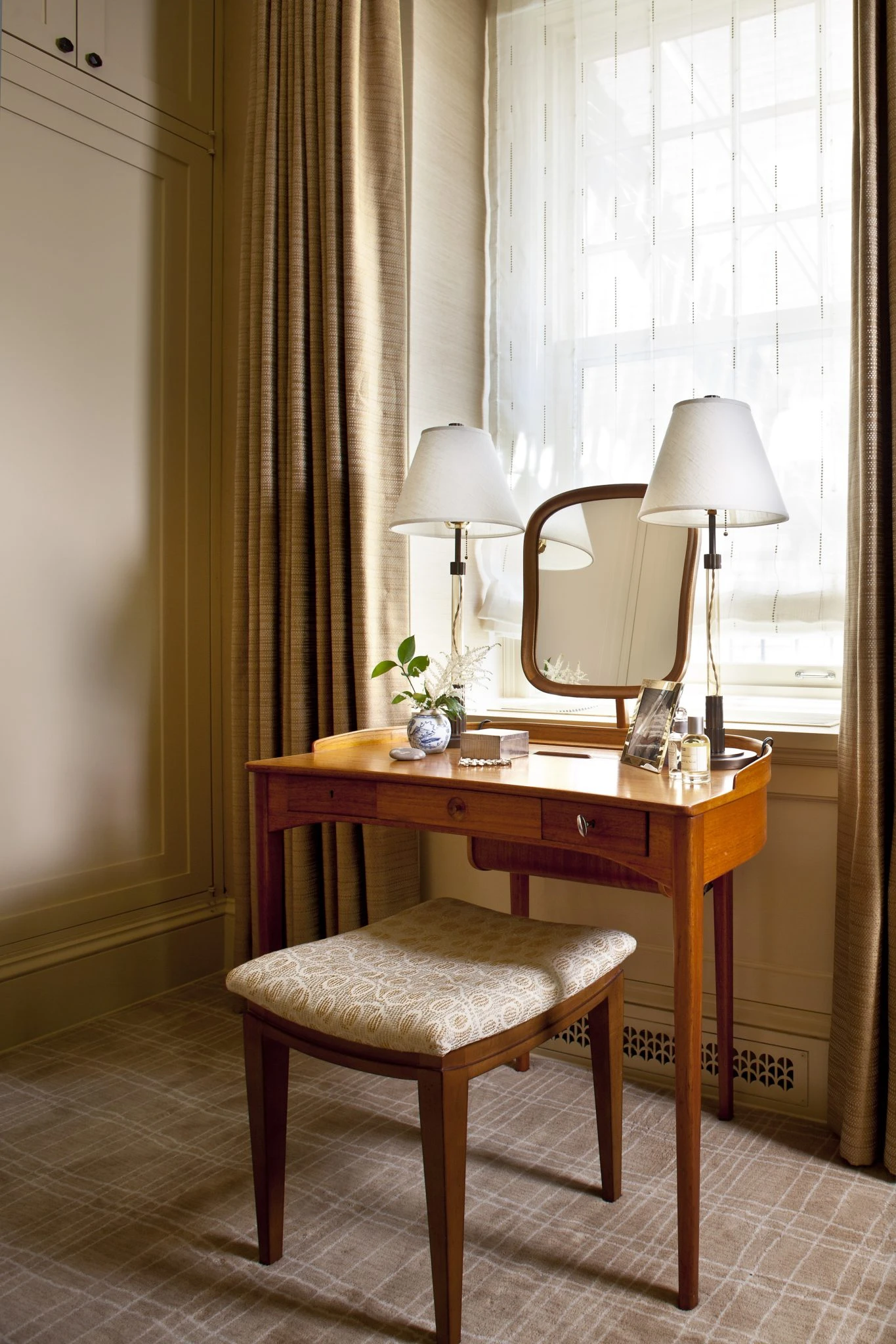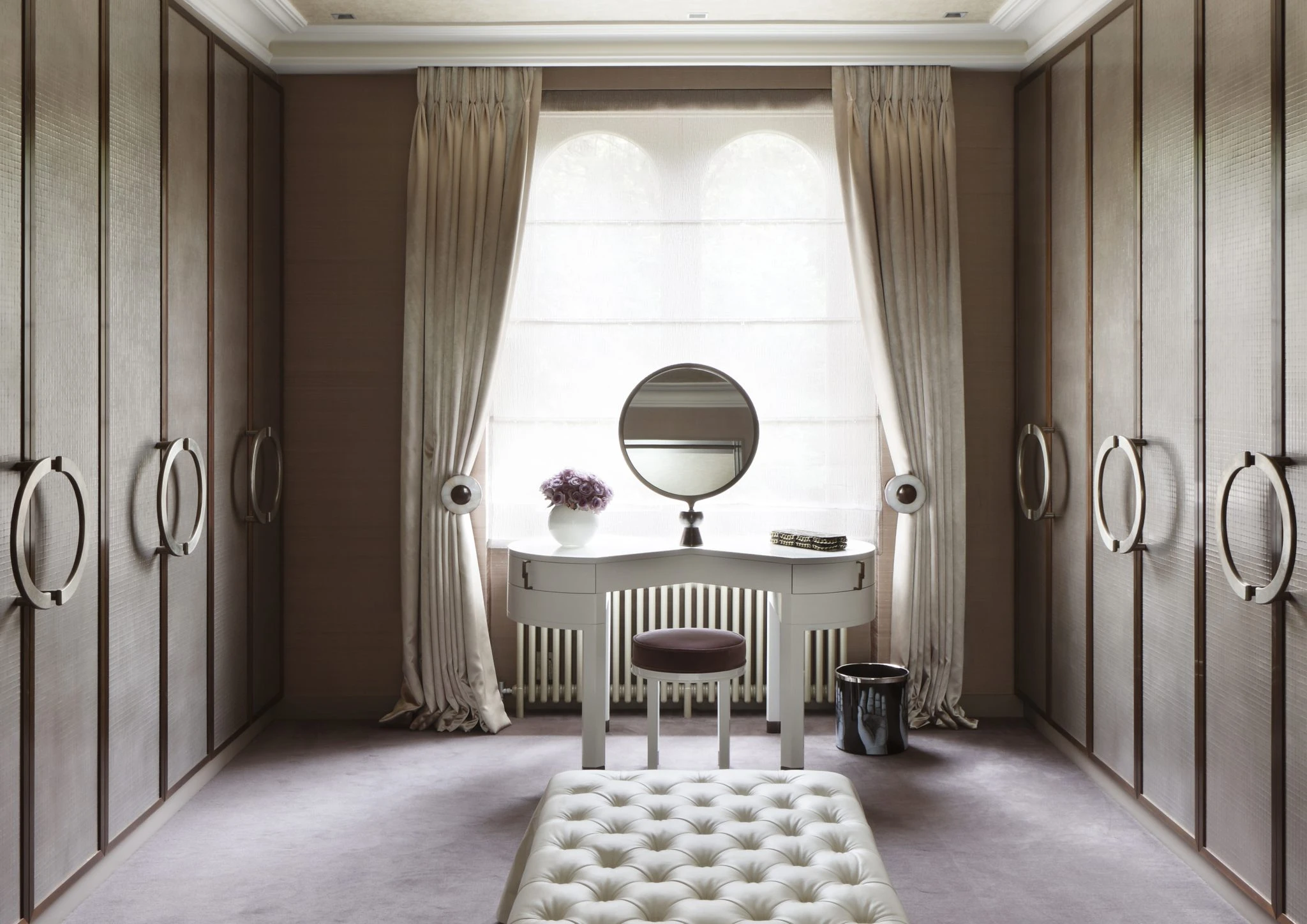 The compact elegant dressing table set is placed next to the light window, inside the dressing room is extremely handy.