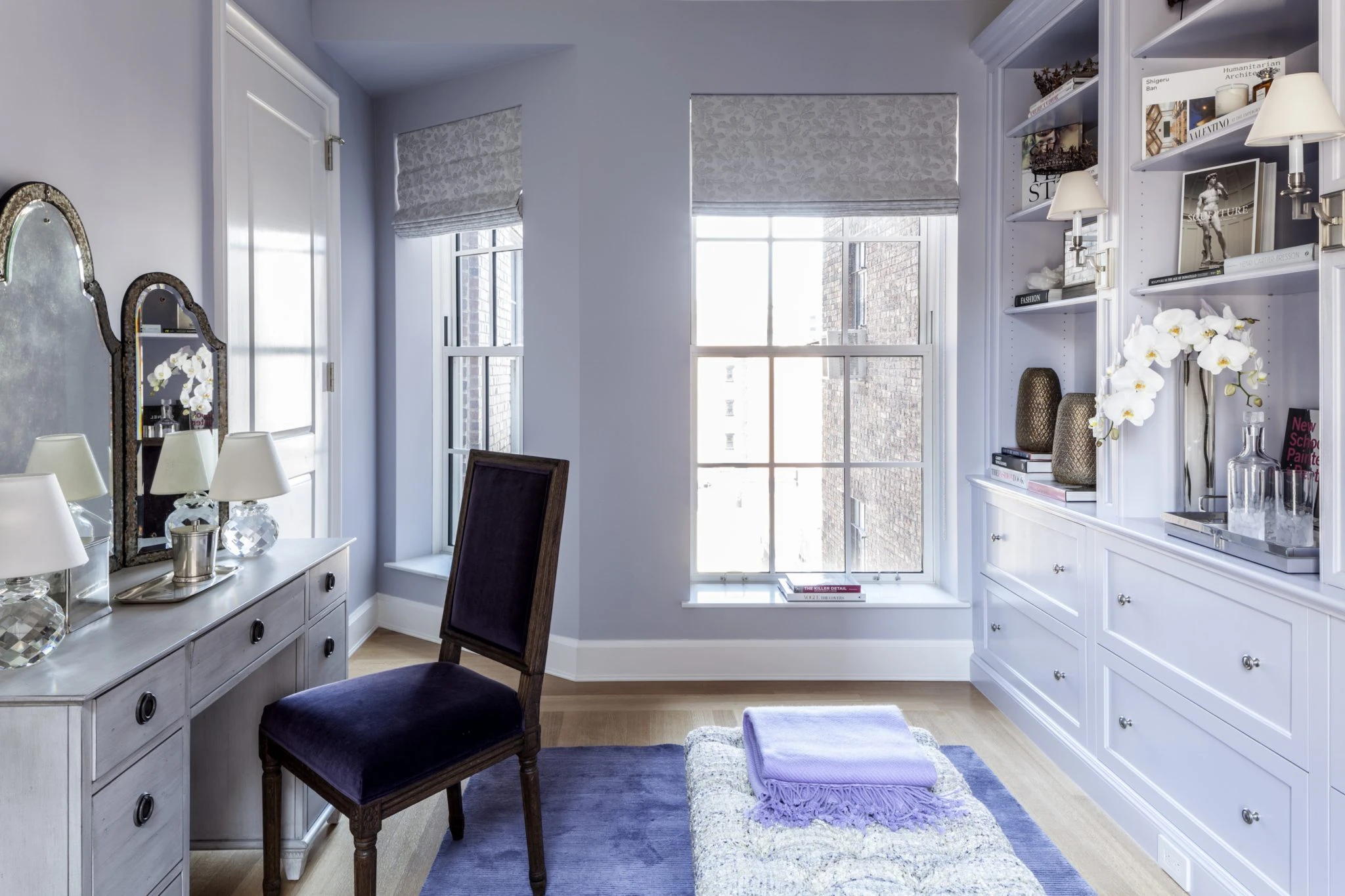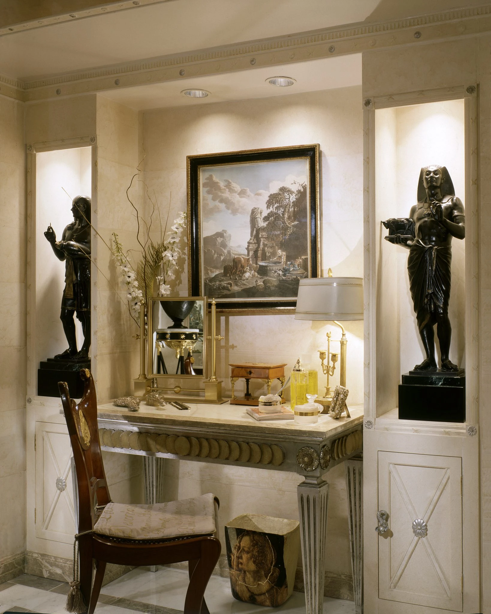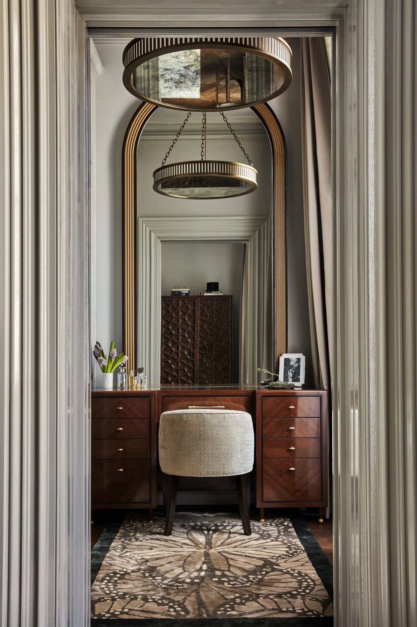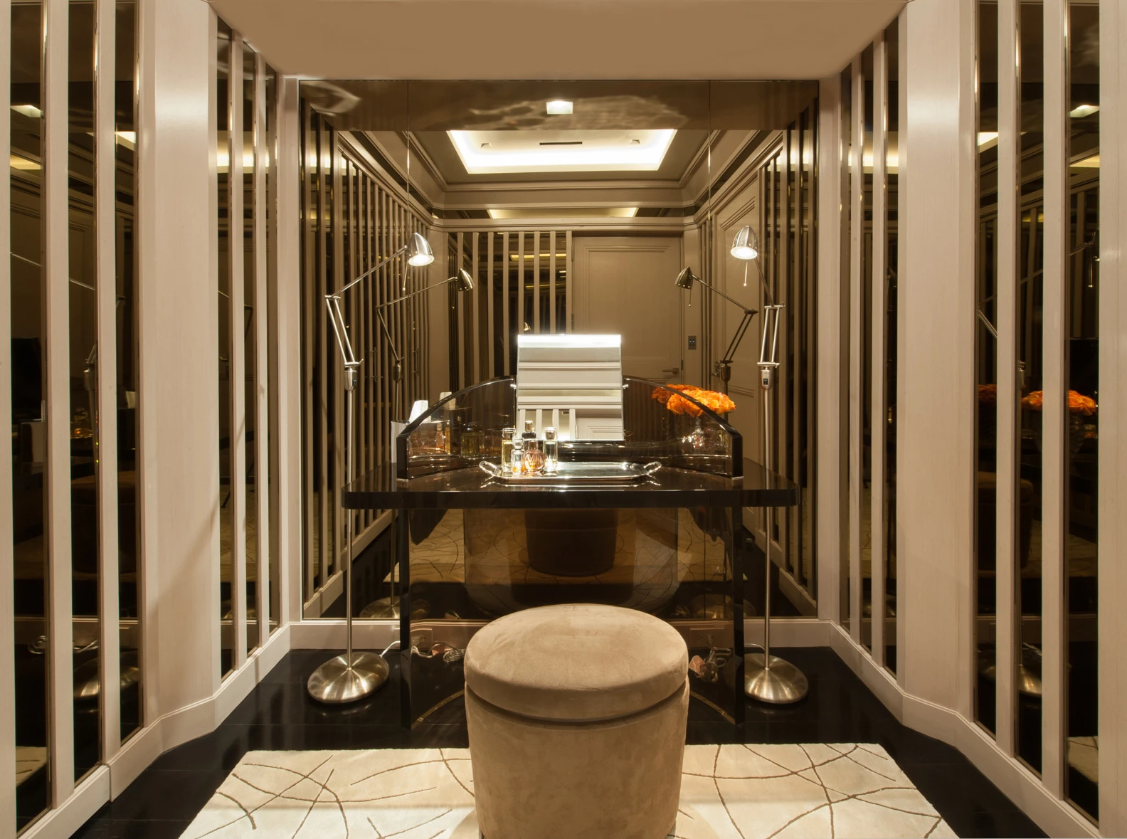 The compact elegant dressing table set is placed next to the light window, inside the dressing room is extremely handy.