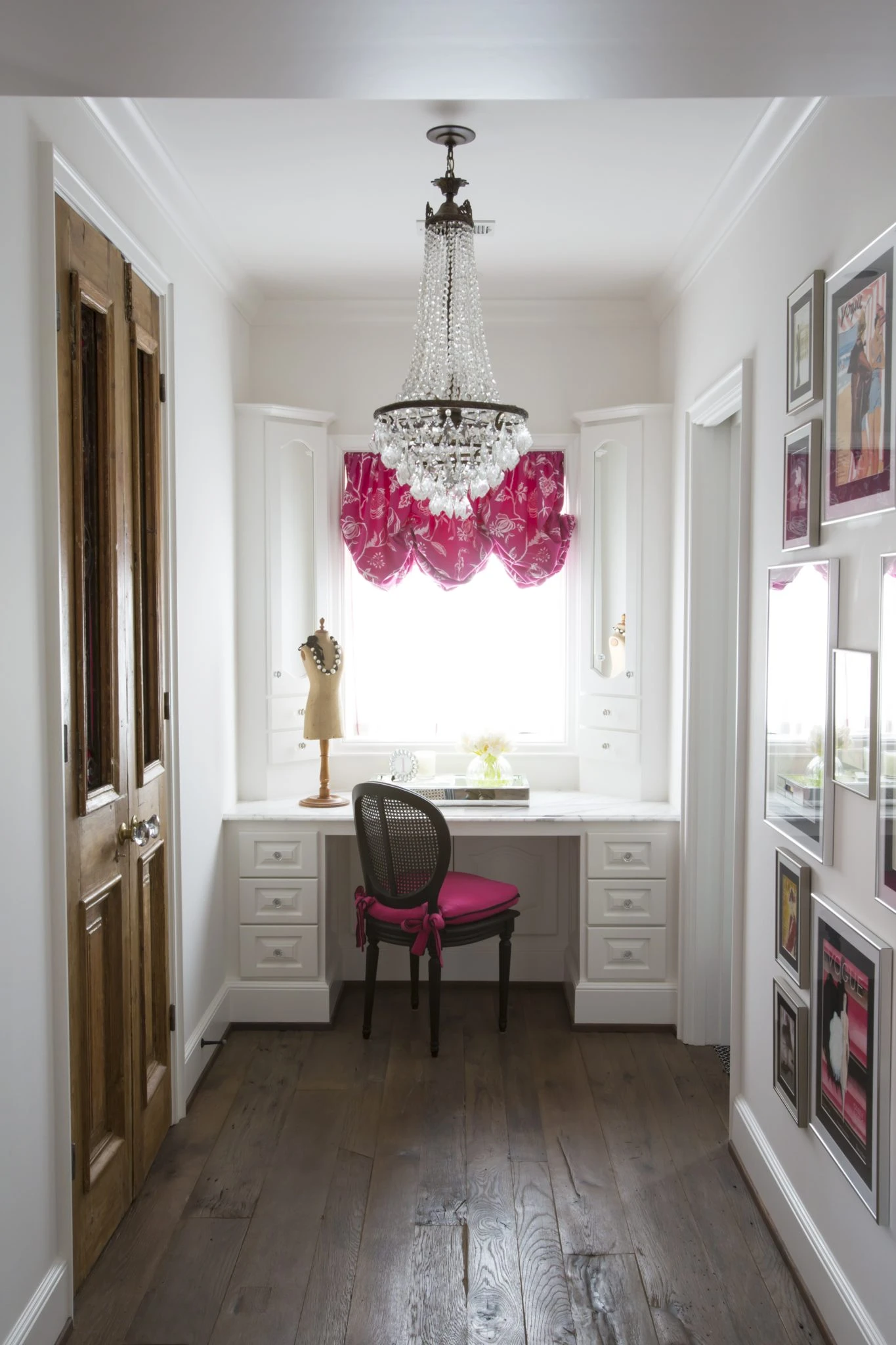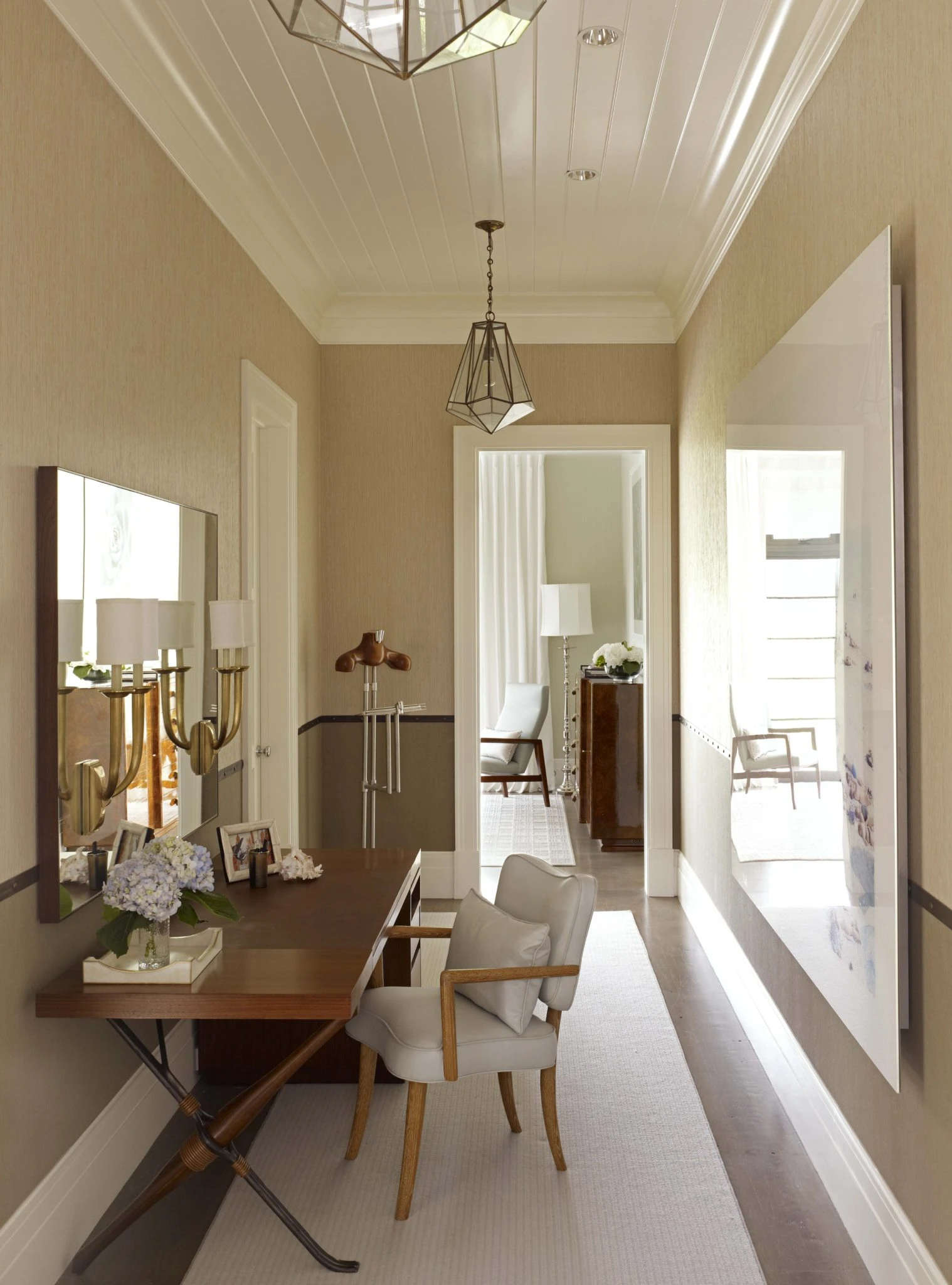 For families with limited area, you can also take advantage of the compact dressing table on the corridor like this.