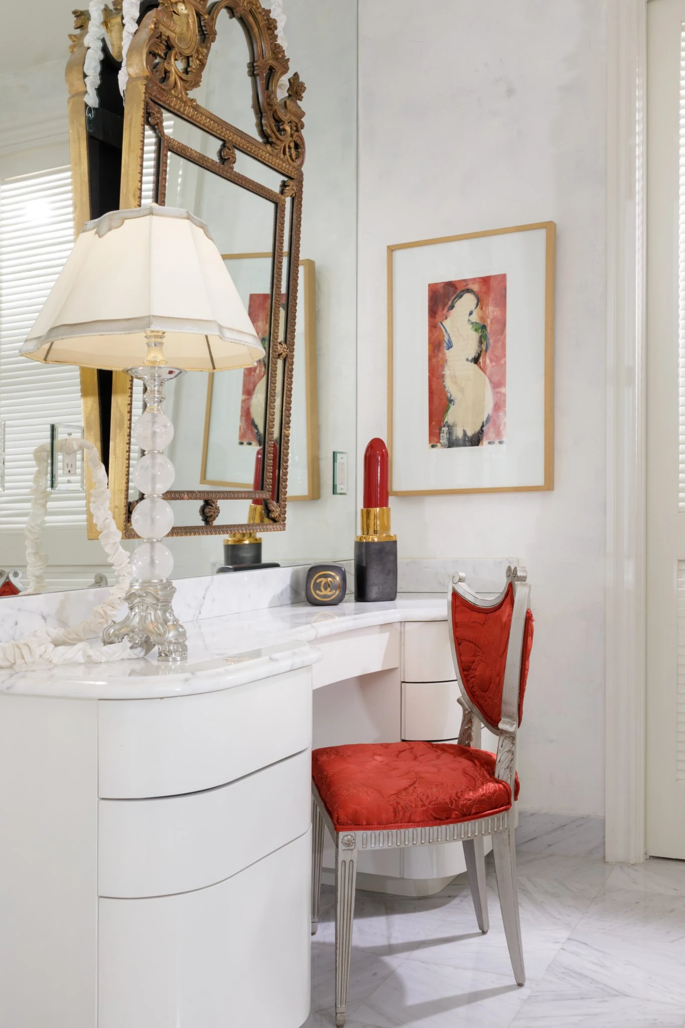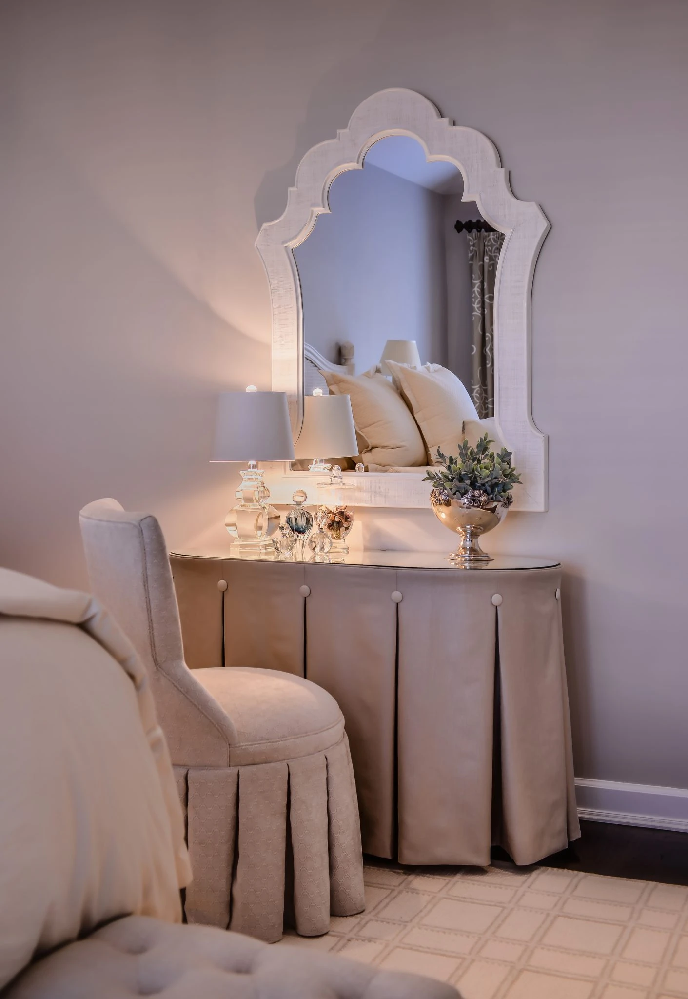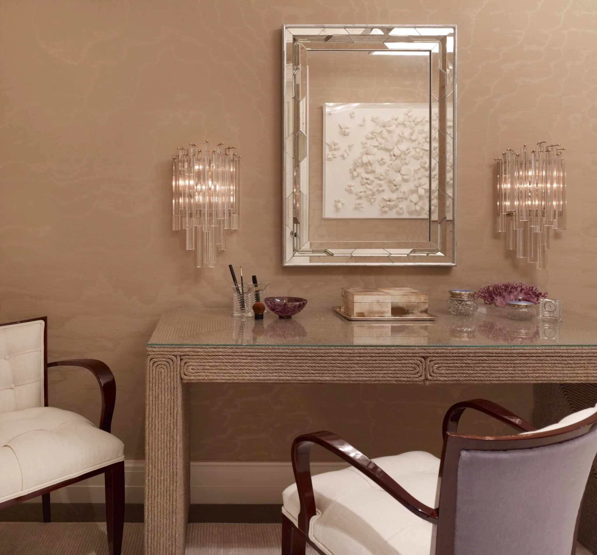 A beauty corner with women certainly indispensable mirrors, dressing tables and seats.