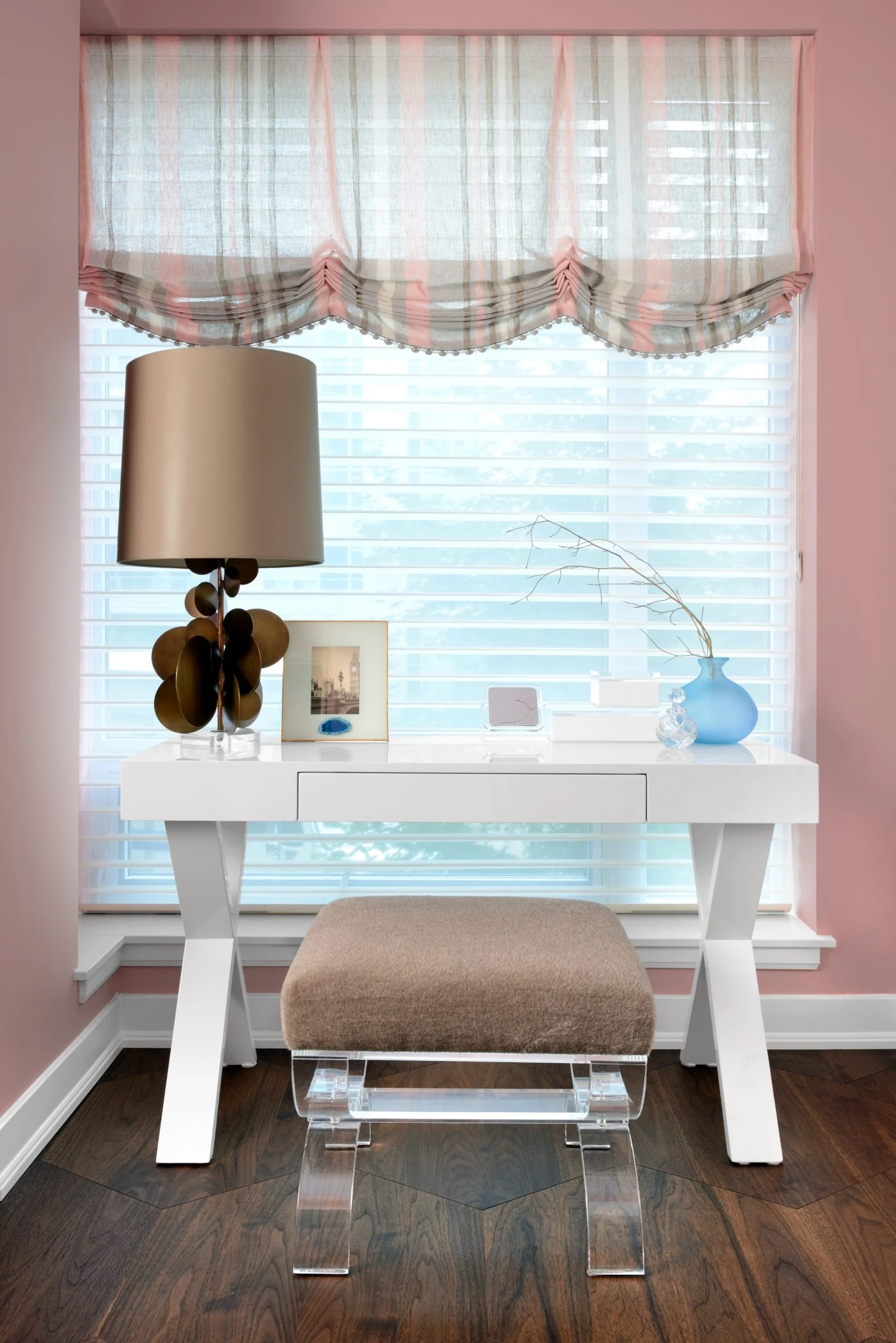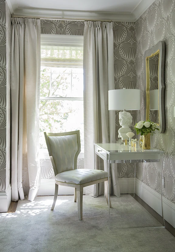 The dressing table set is placed next to the large glass window for you to take advantage of natural light.