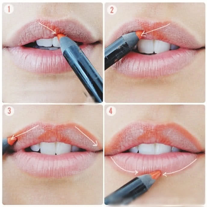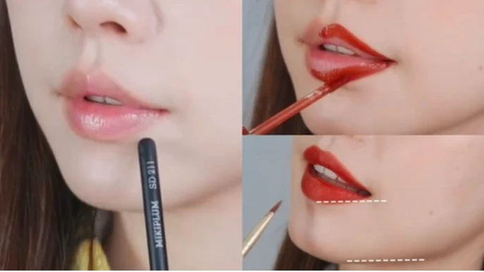 * Method 1:Make the X let the upper lip, then create the contour along your lips and apply lipstick according to the tips above.