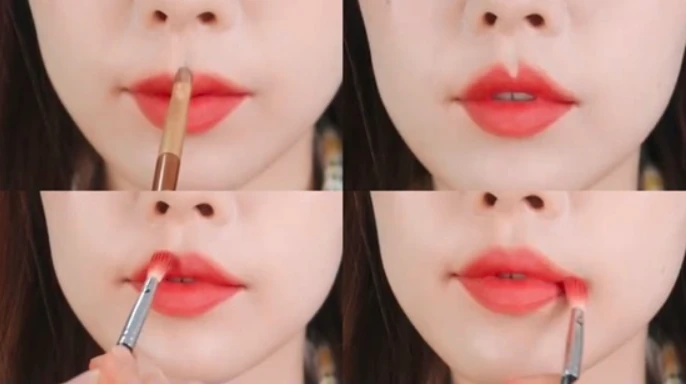 This method is for girls with too thin lower lip.Brushing lipstick with this cross -border, the lower lip mold will look much more plump.