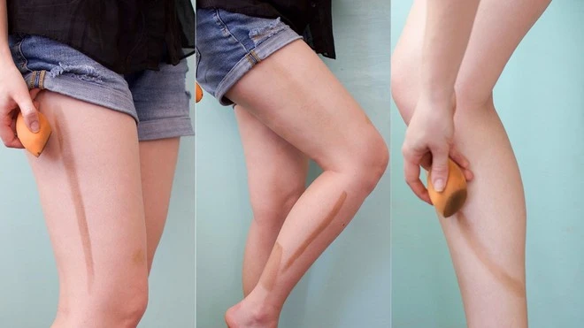 Use the cream to create a darker tone than the skin to make your legs slimmer.You need to apply the cream in the inner thigh, the thighs, draw the curve of the calf, then use a light sponge to spread the color of the orchid.