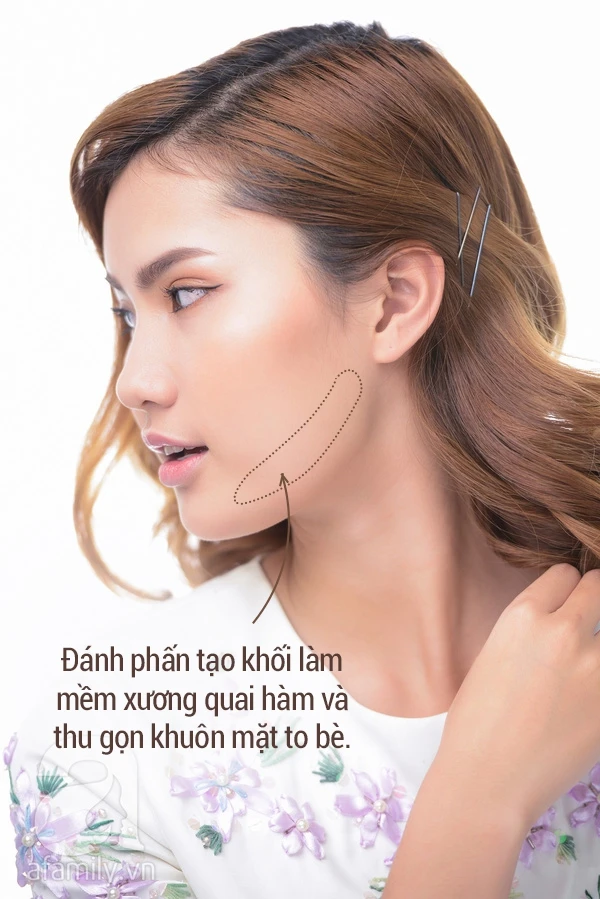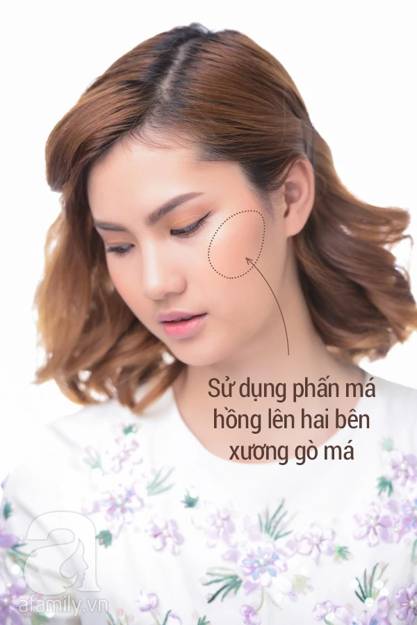 With blush, chalk on the sides of the cheekbone to highlight this skeleton, so your big round face will have a highlight and clearer.Let's watch the clip below to understand the steps!