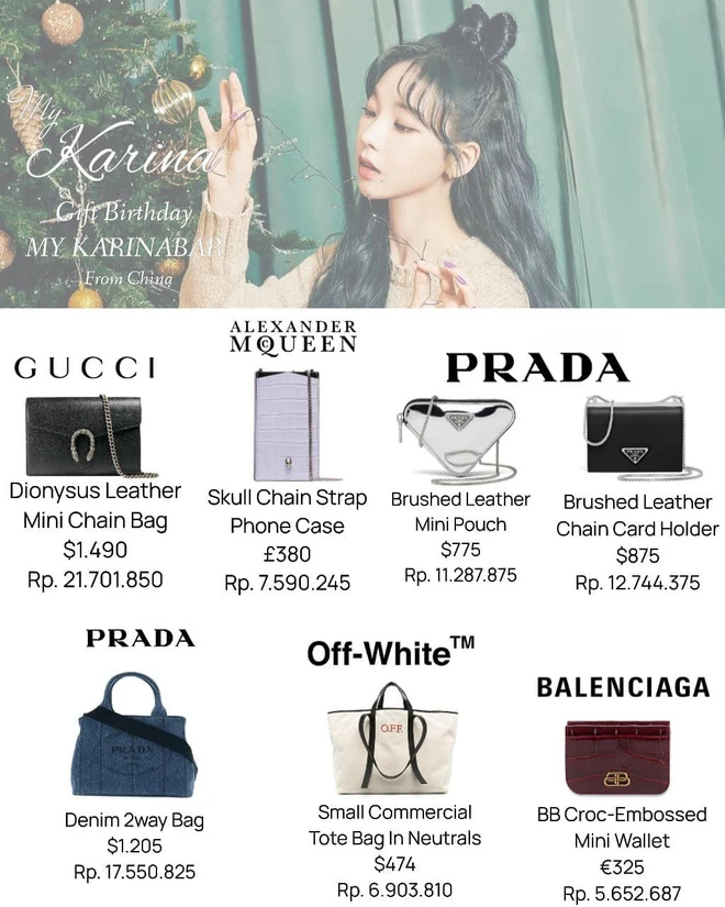 Celebrating Karina's first birthday since debut, the fans have been extremely expensive, buying her dozens of expensive brands.