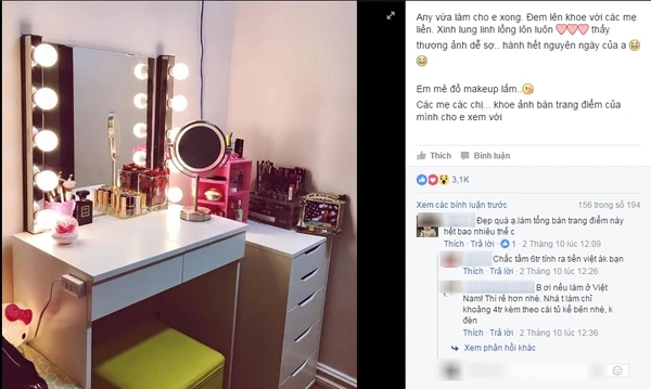 The dressing table is made by the lover by Suri Vo's hand, which makes 500 women admire.