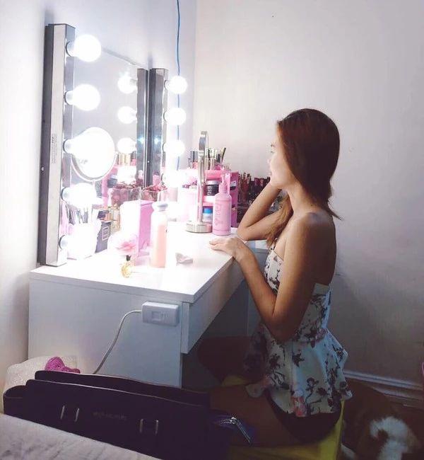 The girl named Quynh Chi showed off her shimmering makeup corner, bold classic colors, making women admire. Nickname Quynh Chau owns a makeup set with a pretty makeup table, with a luxurious black tone.The name of the star is like that: The dressing table is extremely delicate with many items that make women crave the young girl named Linh.