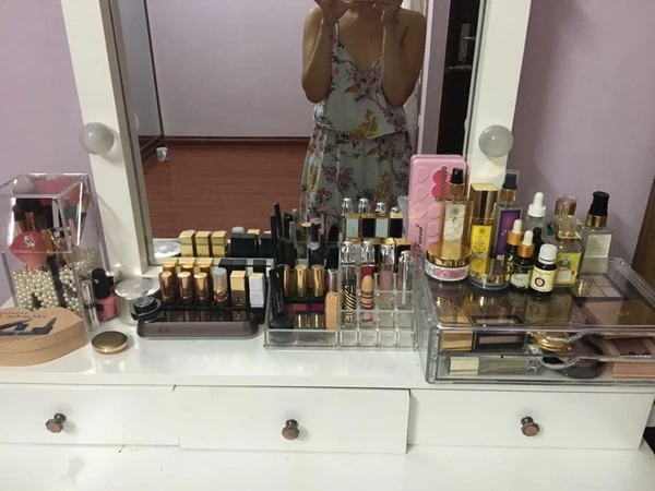 Makeup corner with many expensive dishes of Ms. Tu Anh.