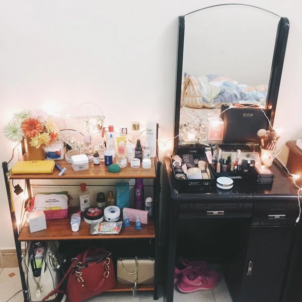 The beautiful makeup table of the young girl Bao Yen, although the number of cosmetics is a bit sketchy, it is important to show off the table.