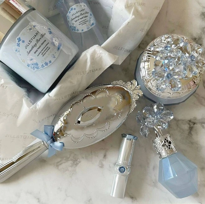 Jill Stuart Beauty is known for its "Innocent Sexy" style, which is considered to be suitable for trends and qualities that are considered attractive for women, especially in Japan.The common point in the packaging design of Jill Stuart is to highlight the feminine and sophisticated appearance with sophisticated motifs, patterns, softness, extremely "bling bling" concept princess, lady.