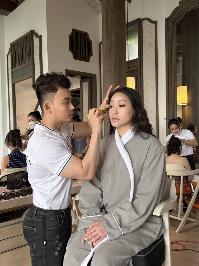 Phu Gia gia is known as a talented, dedicated makeup artist.Not only is the makeup specialist, Phu Gia Gia also opened a makeup academy to train many students to work and become talented.The sharp makeup layers, attractive and exalted the full face lines are always the highlights in his makeup layout.