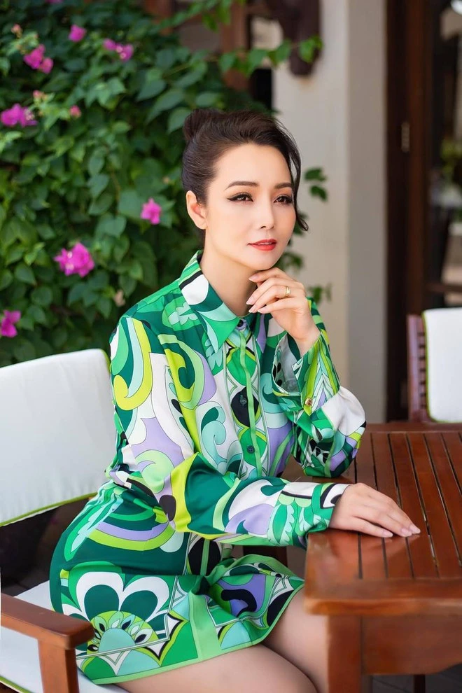 Meritorious Artist Linh Nga gently under the "magic hand" of Phu Gia.He chooses to make up orange makeup, the eye is moderate to bring a youthful appearance but no less feminine, lovely