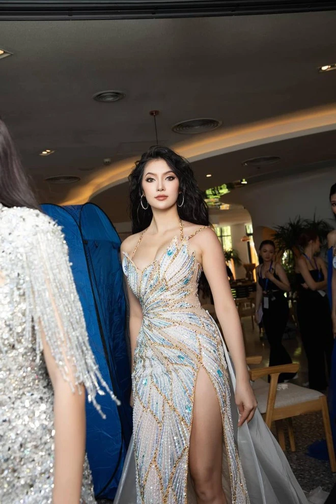 Phu Gia Gia is also the person behind the glittering shapes of Miss Thanh Thuy and Khanh Van.It can be seen that he is extremely thorough in choosing a layout to suit the appearance and concept of each person.