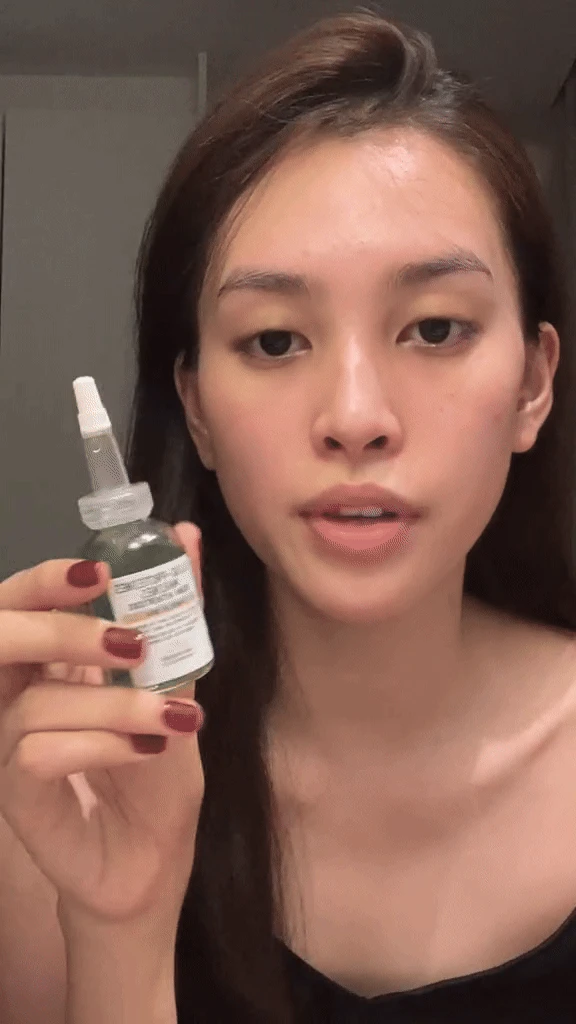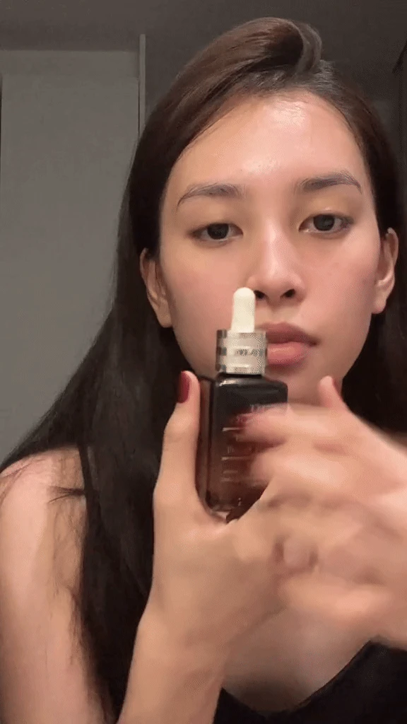 After balancing the pH of the skin with a magic water, Tieu Vy started to apply the serum.She uses up to 3 types of serums to ensure the maximum anti -aging effect.The first girl who favored Vy was the Biologique Recherche Oligo Proteines Marines.She shared because she often had to makeup, plus staying up late and eating hot spicy food, so the dark parts on her face were even more "active".It is this serum that is "savior" for her skin immediately.