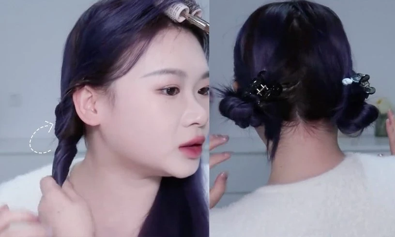 The most important step has come here, then you need to use heat from the hair dryer to curl the hair before.You move the dryer around the bun hair to ensure the heat is spread evenly.After drying for 5 - 7 minutes, you remove the hairpin and the curly hair is very beautiful