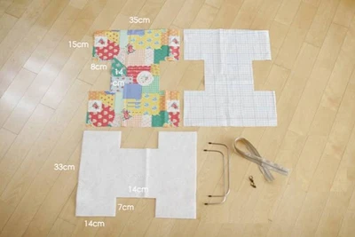 Cut the fabric with many patterns into 1 rectangle: 35cm x 44cm, cut 2 small rectangles between two edges: 8cm x 14cm as a bag.Cut the white checkerboard into a rectangular sheet of the size similar to the size of the pattern fabric as a bag of bag.Cut the soft white felt fabric into a rectangle: 33cm x 42cm, cut 2 small rectangles between two sides of the length: 7cm x 14cm as a bag of bag.