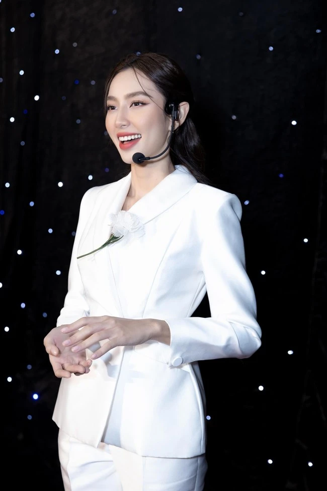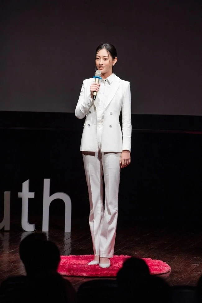 Miss Luong Thuy Linh with a "full white" outfit when she is a speaker.