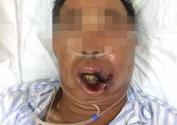 This man was inherently diabetes, so the resistance to infection was reduced.To save his life, the doctors had to remove part of the meat in the upper lip and take out about 100ml of pus.After surgery, in the next 5 days they took out about 50-100ml of pus per day.Finally, the doctor kept his life for the man, but he still had to undergo surgery to recreate the meat on the upper lip that was removed.