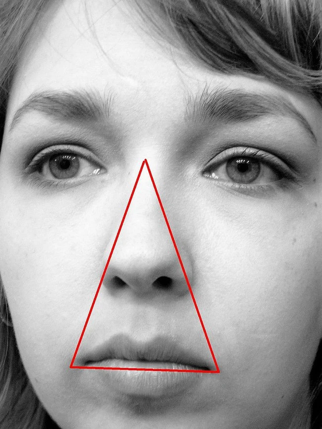 The triangular area on the face.